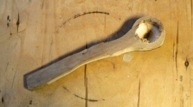| 何となく形がはっきりしてきました。・・・スプーンです!これぞハンドメイドです。 | |||||||||