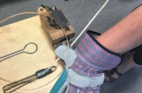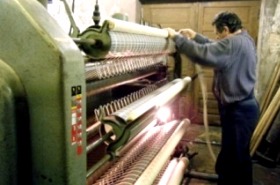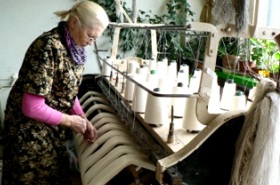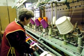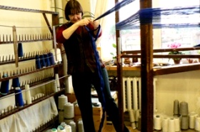 | 首都リガ市郊外にある織物工房。この工房の売りは何と言っても“ハンドメイド”。 まず材料の糸を手作業で撚ります。素材の大半は麻糸です。 |