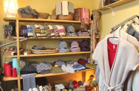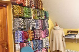 ラトビア全土から集まってきた手編みアイテム達が収まっている棚です。この中から商品を選ぶのはとても楽しいひとときなのです。 | ||||||||