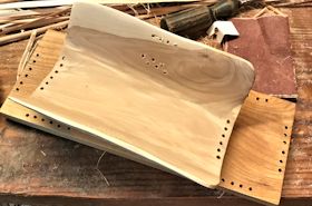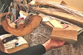 | 木部の準備も全て手作業です。木を見て作品の形が決まります。 |